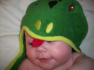 Too stinkin cute! There's just something about babies & baths that makes me smile - especially when it involves hooded character towels :)